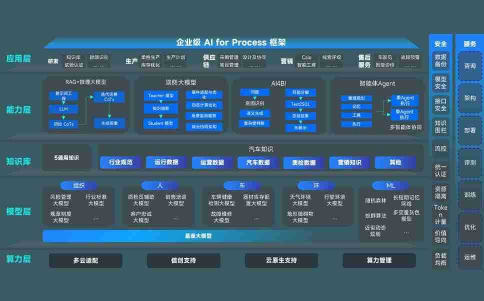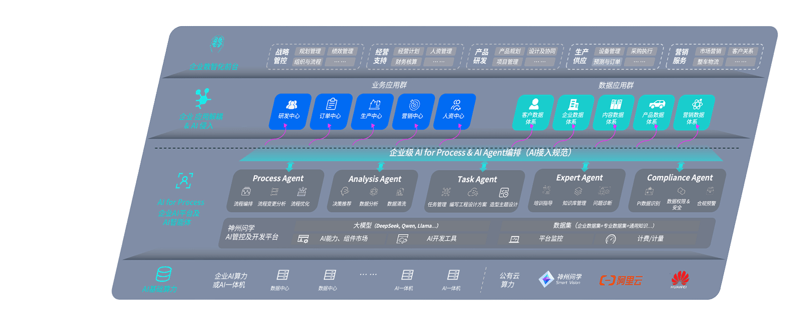 端到端的一站式AI工作空间深度融合了从企业战略规划到日常经营的全流程业务板块,,定向解决车企内部领域多、、部门多、、、链条长、、场景碎片化等难题,,,,支持车企快速构建以AI为核心的生产力写作体系,,,,实现任务执行与AI能力的无缝集成与交互