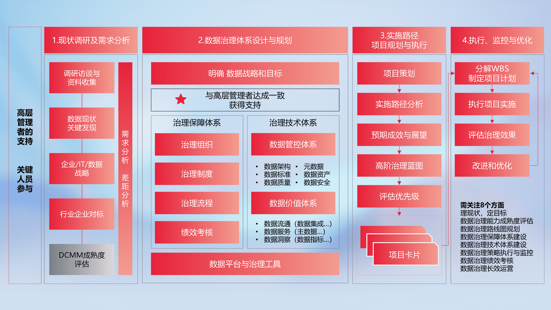 制定并执行统一的数据标准,,规范数据定义和格式,,,,消除冗余和不一致性,,,实现跨部门和跨系统的数据一致性,,,为企业提供标准化的数据基础。。。